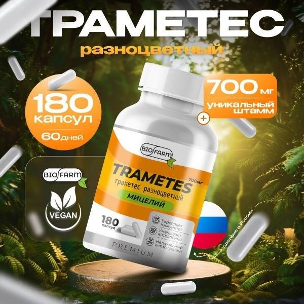 Discover the power of nature with Biofarm's Turkey Tail Mushroom (Trametes versicolor) capsules. For over 5 years, we've provided high-quality, natural supplements. Each capsule contains 700mg of this highly-valued medicinal mushroom, offering a superior dosage compared to many competitors (typically 600mg). A daily intake of 3 capsules provides 2100mg of beneficial compounds, supporting immune function, reducing inflammation, and promoting liver health. Turkey Tail's antiviral and antibacterial properties help boost your body's natural defenses. It also offers potential pain relief and may help regulate cholesterol levels, supporting cardiovascular health. Experience the difference of a higher-potency Turkey Tail extract. Available in 90 and 180 capsule bottles. Not recommended for pregnant or breastfeeding women, children under 10, or individuals with allergies to the ingredients. This product is not a drug or dietary supplement (in accordance with [relevant regulatory body/country]). Boost your well-being naturally with Biofarm.