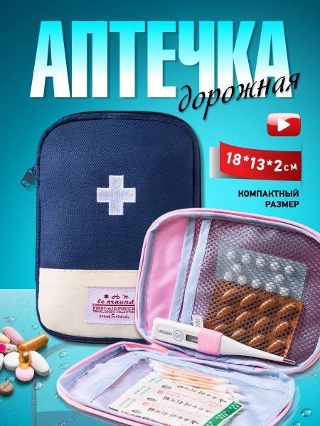 Ensure peace of mind on your next adventure with this stylish and compact travel first-aid kit. Perfect for road trips, vacations, camping, or everyday use, this organizer keeps your medications and essential supplies neatly organized and readily accessible. Measuring 18x13x2 cm, it easily fits in a purse, backpack, suitcase, or car.