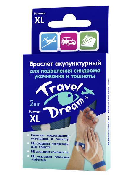 Experience nausea-free travel with the TravelDream XL acupressure wristband. Effectively relieving nausea and motion sickness caused by cars, planes, boats, trains, amusement park rides, and more, this drug-free solution is also helpful for pregnancy-related nausea. This comfortable, reusable wristband gently stimulates acupressure points on your wrist, providing relief within 2-5 minutes. The effect lasts throughout your journey. For optimal results, wear one on each wrist. Please note: Wristband color and design may vary. Size XL, size #2.