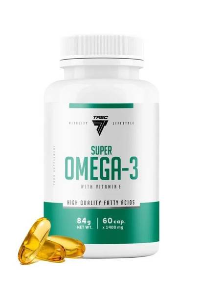 Trec Nutrition Super Omega-3 delivers a potent dose of EPA and DHA omega-3 fatty acids in every 1400mg capsule. Sourced from pure fish oil, this high-quality supplement supports cardiovascular health, sharpens cognitive function, boosts immunity, and reduces inflammation. Experience improved brain function, enhanced vision, reduced bad cholesterol, and healthier joints and skin. Ideal for individuals seeking optimal health, managing stress, or maintaining peak physical and mental performance. 60 capsules provide a convenient and effective way to harness the power of omega-3s.