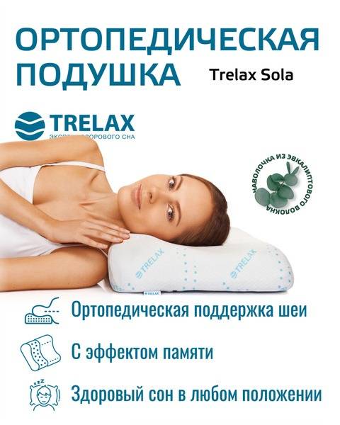 Keywords: orthopedic pillow, memory foam pillow, neck pillow, back pain pillow, sleep pillow, cervical pillow, TRELAX, Sola, 35x60cm, 14cm, pain relief, sleep improvement, better posture, anti-wrinkle pillow, healthy sleep, women's pillow, somnologist recommended, orthopedist approved, memory foam, antibacterial, hypoallergenic