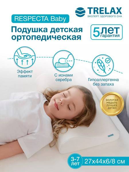 orthopedic pillow, memory foam pillow, children's pillow, kids pillow, teen pillow, neck support pillow, cervical pillow, posture pillow, sleep pillow, baby pillow (age 3+), TRELAX RESPECTA BABY, healthy sleep, child health, pain relief, gift for kids, РЗН 2016/3829