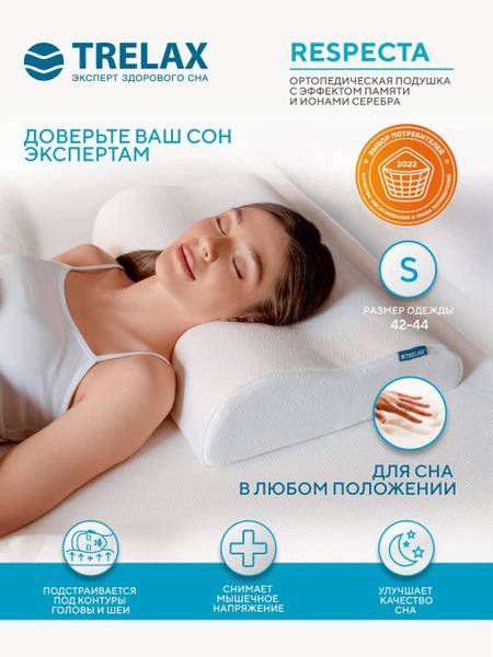 The TRELAX RESPECTA orthopedic pillow, developed in collaboration with orthopedic doctors, offers unparalleled support and comfort for a truly restorative sleep. This versatile pillow is designed to cradle your neck and head in the optimal position, whether you sleep on your back, side, or stomach. Enjoy the benefits of: