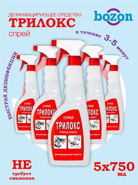 Trilox Disinfectant Spray (750ml x 5) offers rapid, effective disinfection of surfaces and objects. This unique, ready-to-use formula features a minimal effective alcohol content for express disinfection against viral, fungal, and bacterial infections, including tuberculosis. Achieve complete disinfection in just 3-5 minutes. Its superior cleaning and deodorizing properties eliminate the need for rinsing; it dries quickly without leaving residue. Trilox actively breaks down biofilms on surfaces and is suitable for most materials (excluding those sensitive to alcohol). Ideal for cleaning microscope slides and glassware, including removal of immersion oil in laboratories, without damaging surfaces or causing corrosion. Experience the power of Trilox – effective, convenient, and safe.