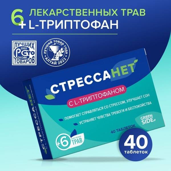 Stressanet tablets offer a plant-based, calming solution for stress management. These effective stress relief tablets, containing L-Tryptophan, help alleviate anxiety, restlessness, and improve sleep. Three tablets contain: 9.6mg flavonoids (as rutin), 0.72mg valerianic acid, 30mg tryptophan, 3mg iridoids, and 1.5mg rosmarinic acid. This natural anti-stress formula combines six medicinal herbs with the essential amino acid L-Tryptophan, crucial for restful sleep. Unlike many sedatives, Stressanet doesn't cause drowsiness or lethargy, allowing you to maintain energy and focus even during stressful periods. These effective calming tablets are suitable for both men and women, supporting nervous system health and reducing feelings of anxiety, fear, irritability, and agitation.
