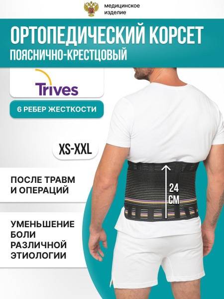 The Trives Medical Lumbar-Sacral Orthopedic Corset offers effective support and pain relief for a variety of lower back conditions. This high-quality corset is designed to provide medium fixation and stabilization of the lumbar spine, alleviating discomfort and promoting healing.