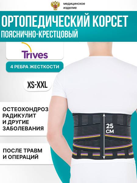 back brace, lumbar support, back pain relief, lower back pain, radiculitis, myositis, muscle strain, post-surgery recovery, osteochondrosis, herniated disc, osteoporosis, spondylosis, osteoarthritis, spondylolisthesis, spinal instability, muscle weakness, spinal support, medical brace, orthopedic brace, semi-rigid brace, adjustable brace, breathable brace, comfortable brace, Trives Medical, pain relief, back pain treatment, posture correction.