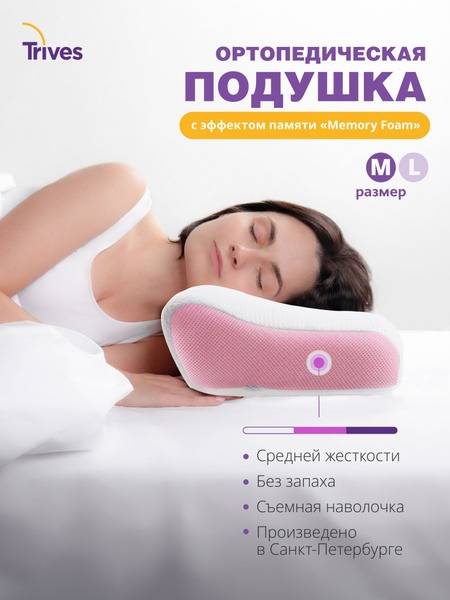 Experience the ultimate comfort and support with the Trives orthopedic pillow (50x32cm, 12.5cm height). This medium-firm pillow features a contoured neck and shoulder cutout designed to promote proper spinal alignment and muscle relaxation during sleep. The innovative memory foam construction cradles your head and neck, relieving pressure points and improving blood circulation. Enhanced breathability is ensured through 3D mesh inserts and a micro-massage fabric cover. Wake up feeling refreshed and rejuvenated with improved breathing, reduced muscle tension, and a healthier sleep posture. Made with high-quality memory foam in St. Petersburg, Russia, and clinically tested by Roszdrav, this Trives pillow guarantees a superior sleep experience. Enjoy a good night’s sleep and wake up feeling your best. Includes a removable, washable cover.