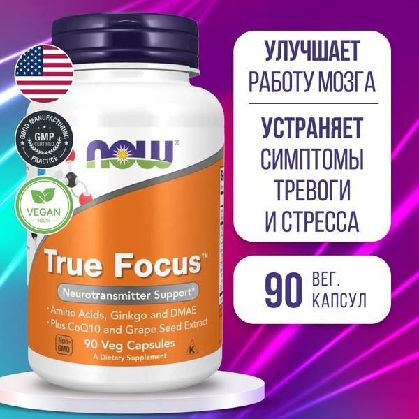 Now True Focus (90 vegetarian capsules) is a comprehensive dietary supplement designed to enhance cognitive function, improve focus, and support emotional well-being. Its unique formula combines essential amino acids, B vitamins, and coenzymes to optimize brain health and performance.