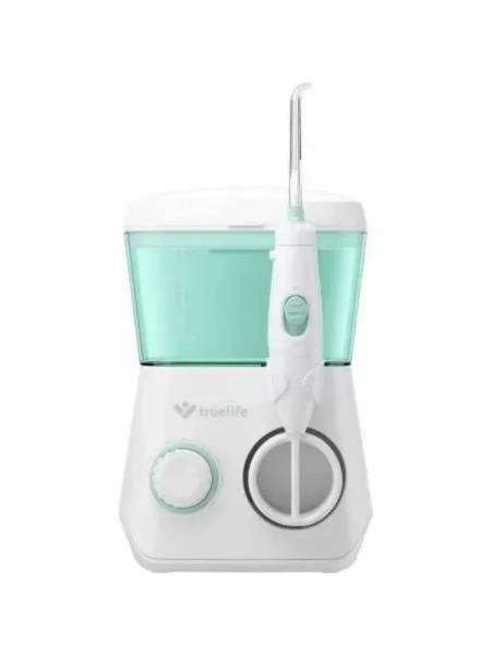 Keywords: TrueLife AquaFloss, TLAQFLST, oral irrigator, water flosser, dental irrigator, teeth cleaning, gum massage, interdental cleaning, plaque removal, 600ml water tank, ergonomic design, angled nozzle, removable reservoir, replaceable nozzle, cleaning modes, white, blue.
