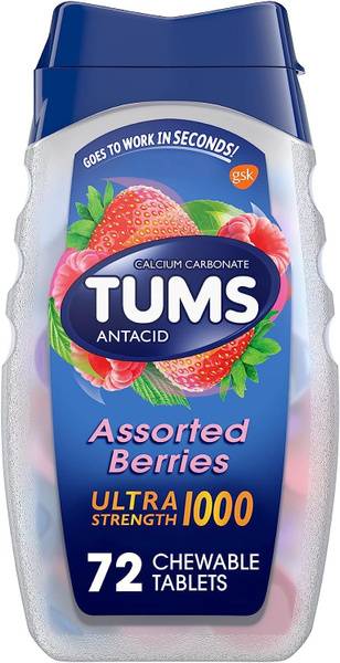 Experience fast, powerful relief from heartburn, acid indigestion, and sour stomach with TUMS Extra Strength Berry Flavors Antacids. These delicious, chewable tablets contain 750mg of calcium carbonate per tablet for ultra-fast neutralization of stomach acid.