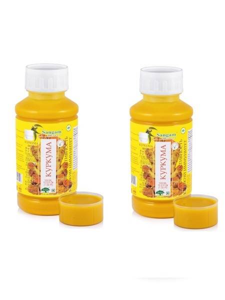 Turmeric juice, Sangam Herbals, curcumin, antioxidant, anti-inflammatory, digestive health, immune support, joint health, liver health, cholesterol, blood thinner, natural remedy, Ayurvedic medicine, 500ml, health supplement, organic (if applicable), vegan (if applicable).