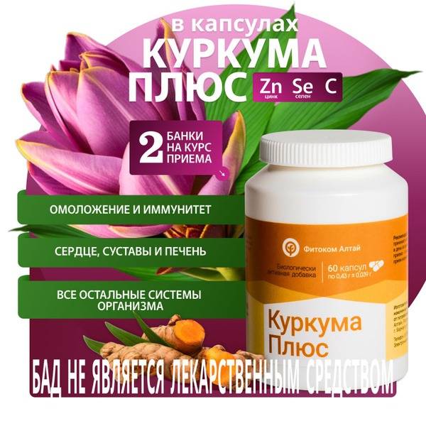 Turmeric Plus, Turmeric, Curcumin, Vitamin C, Zinc, Selenium, Immune Support, Digestive Health, Antioxidant, Anti-inflammatory, Joint Health, Blood Sugar, Energy, Detox, Phytocom Altai, Prirodny Lekar, Dietary Supplement, 60 Capsules, Post-COVID Recovery, Herpes, Flu, Candida, Hypothyroidism, Heavy Metal Detox, Metabolism, Appetite, Sleep.