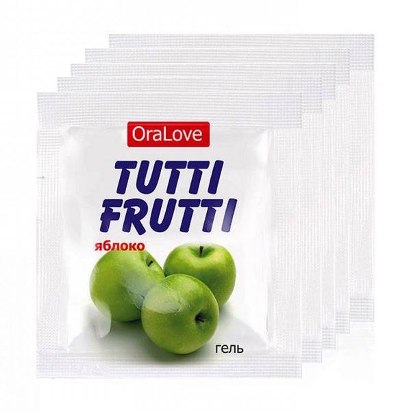 Keywords: edible lubricant, oral lubricant, Tutti Frutti, OraLove, green apple, sexual lubricant, couple's lubricant, intimacy enhancer, lubrication, hydration, safe lubricant, latex compatible, silicone compatible, 4g sachets, 5 pack, BIORITM, Russia, edible lube, sex toys, couples, sexual wellness, intimate pleasure