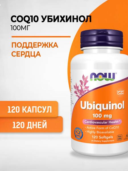 Ubiquinol, CoQ10, NOW Foods, antioxidant, cardiovascular health, anti-aging, immune support, omega 3, dietary supplement, health supplement, 100mg, 120 capsules, bioavailable, heart health, skin health, hair health, free radicals, oxidative stress, physical performance, energy boost, American brand, NOW Ubiquinol 100mg, supplement facts, benefits of ubiquinol.