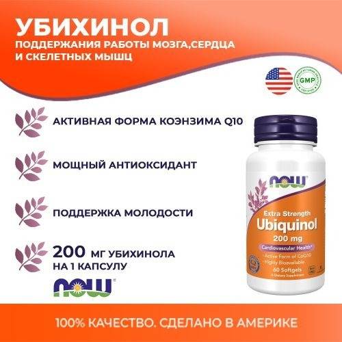 Keywords: Ubiquinol, CoQ10, Coenzyme Q10, Kaneka Ubiquinol, antioxidant, heart health, cardiovascular health, brain health, cognitive function, muscle support, energy production, mitochondrial health, free radical damage, bioavailable, MCT oil, NOW Foods, dietary supplement, 200mg, 60 softgels, GMP certified.