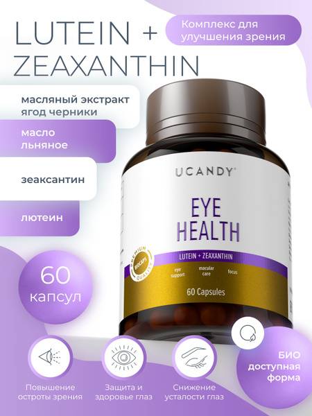 Support optimal eye health and improve vision with UCANDY, a superior eye health supplement. Our unique formula features bioavailable capsules (free of titanium dioxide) with Lutein and Zeaxanthin, powerful carotenoid pigments that combat free radicals and protect against high-energy blue light. These essential nutrients accumulate in the macula, enhancing central vision. Further enriched with sea buckthorn oil (for added carotenoids), bilberry extract (antocyanins for circulatory support), and flaxseed oil (Omega-3s), UCANDY provides comprehensive eye protection and promotes sharper vision. Reduce eye strain, improve visual acuity, and shield your eyes from UV damage. One capsule daily, taken with food, for two months. Each capsule contains 5mg Lutein and 1mg Zeaxanthin.