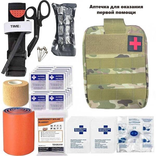Keywords: First-aid kit, survival kit, emergency kit, tactical pouch, camping gear, hiking gear, hunting gear, travel kit, outdoor gear, emergency blanket, tourniquet, Israeli bandage, CPR mask, safety scissors, alcohol swabs, cotton swabs, splint, adhesive bandage, safety pins, mylar blanket, gift ideas, preparedness, disaster preparedness, first aid supplies, medical supplies.