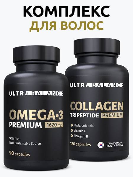 Experience premium hair nourishment with UltraBalance's potent blend of Omega 3 (1620mg) and Tripeptide Collagen. This advanced formula combines high-dose vitamins and minerals with low molecular weight marine collagen sourced from Korea, enriched with hyaluronic acid and Vitamin C. Our Omega-3, derived from premium Icelandic fish oil, boasts a superior concentration of EPA and DHA fatty acids. Manufactured under stringent GMP and ISO 22000 international standards, this vitamin complex is your key to cellular renewal, anti-aging, and robust tissue growth.