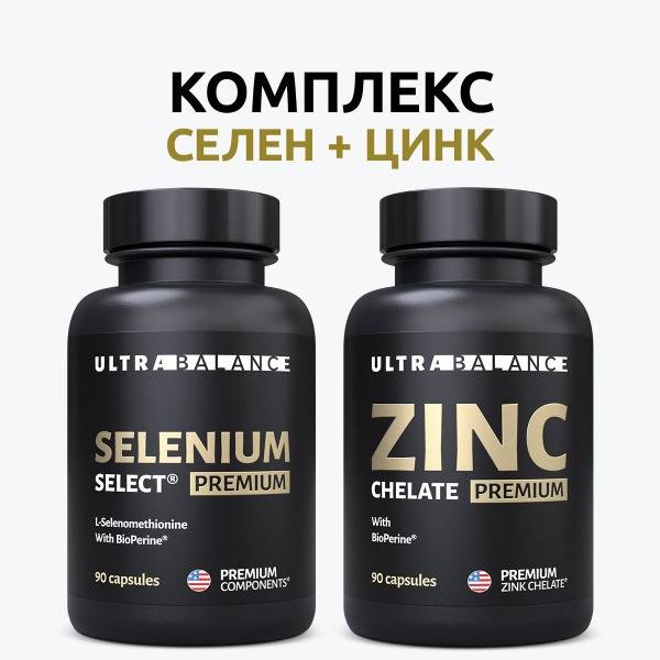 UltraBalance Selenium Select and Zinc Chelate Premium offer a patented, highly bioavailable formula enhanced with BioPerine. Featuring L-selenomethionine (a molecularly integrated form of selenium) and chelated zinc, manufactured in the USA. Selenium, incorporated into the methionine amino acid chain, maximizes absorption and bioavailability, ensuring efficient metabolic utilization. Zinc bisglycinate provides superior delivery without compromising quality. European Food Safety Authority (EFSA) approved for safety. This vitamin and mineral complex boosts natural immunity, provides potent antioxidant and immunomodulatory effects, improves hair and nail health, regulates sebaceous glands, reduces inflammation, and supports reproductive health by normalizing hormone production. It also helps retain skin moisture, supports collagen production for improved skin elasticity and firmness, and accelerates tissue regeneration. Zinc plays a crucial role in male and female hormone production, enhancing fertility and libido. Selenium is vital for sperm health, and deficiency can lead to infertility. Zinc chelate's superior bioavailability (43.4% higher than zinc gluconate) has been clinically proven. BioPerine, a natural absorption enhancer, boosts selenium absorption by over 30%. Just one 100mcg selenium capsule and one 25mg zinc capsule daily are sufficient. Our capsules are free from titanium dioxide, artificial colors, and flavors; the shell is made from bovine gelatin. Recommended use: Adults take one selenium and one zinc capsule daily with food. Consult your doctor for higher dosages. Course duration: 30, 45, 50, 60, or 90 days; can be extended as needed. State Registration Numbers: RU.77.99.88.003.R.001930.07.23, RU.77.99.88.003.R.002878.10.23. "Honest Sign" marked product.