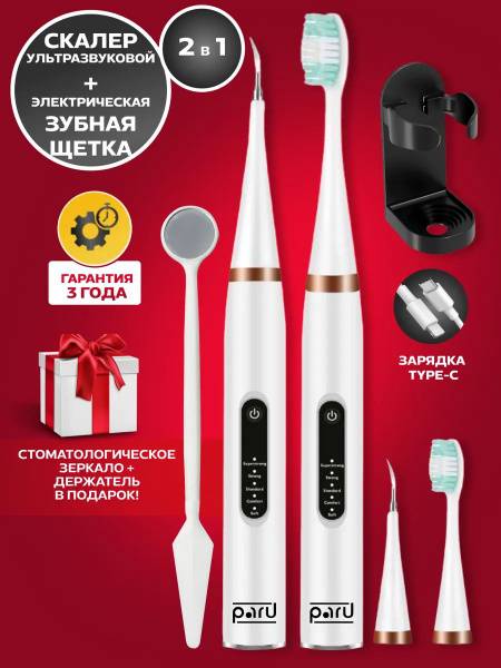 Experience superior oral hygiene with our 2-in-1 ultrasonic electric toothbrush and scaler. Featuring 40,000 vibrations per minute, it creates micro-bubbles that effortlessly remove plaque and stains from even the most hard-to-reach areas. Its innovative technology cleans teeth gently yet effectively, preventing cavities and gum damage. Remove stubborn stains from nicotine, coffee, tea, and wine with ease. The ultrasonic waves combined with soft bristles prevent tartar buildup, revealing naturally whiter teeth. Enjoy 5 cleaning modes, from gentle to intense, and a long-lasting battery (up to 90 days) with convenient USB-C charging. Easily replaceable brush heads and clear LED indicators complete this premium oral care solution. Achieve a professional-level clean and brighter smile from the comfort of your home.
