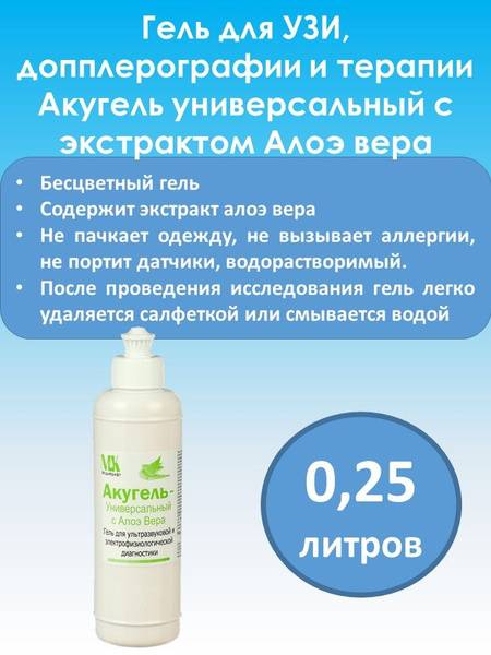 Aquagel Universal Ultrasound Gel with Aloe Vera is a premium, versatile gel designed for all types of ultrasound and electrophysiological examinations, defibrillation, therapeutic applications, and aesthetic procedures. Its superior formulation boasts high conductivity, acoustic accuracy across a wide frequency range, and complete water solubility. This transparent, colorless gel is hypoallergenic, bacteriostatic, non-toxic, and leaves no residue on clothing or damage to electrodes and transducers. Enriched with soothing Aloe Vera extract for enhanced skin comfort. Ideal for medical professionals and aesthetic practitioners.