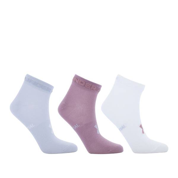 Experience superior comfort and performance with the Under Armour Essential Low Cut 3-Pack Socks. These lightweight, breathable socks feature a knitted construction that conforms to the shape of your foot for a second-skin feel. Enjoy all-day support with the added arch compression that reduces foot fatigue. The moisture-wicking fabric keeps your feet dry and comfortable, while anti-odor technology keeps them fresh. Anatomical heel design ensures a secure and comfortable fit, and the embossed logo adds a subtle touch of style. This 3-pack includes three pairs of Pink Elixir socks in a large US size. Perfect for athletic activities or everyday wear.