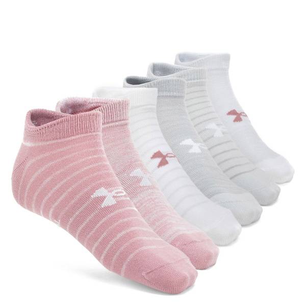Experience superior comfort and performance with the Under Armour Essential No Show Socks 6-Pack in Pink Elixir (US:L). Crafted from ultra-lightweight, breathable fabric, these socks are perfect for everyday wear and intense workouts, especially during hot summer days. Their moisture-wicking properties keep your feet dry and prevent odor, while the arch support reduces foot fatigue. The anatomical heel design ensures a snug, comfortable fit. This 6-pack provides ample options for your active lifestyle. Enjoy all-day comfort and performance with Under Armour.