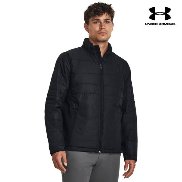 Stay dry and comfortable on the course with the Under Armour Men's UA Storm Session Golf Jacket. This jacket features UA Storm technology for superior water repellency without sacrificing breathability. Strategic synthetic insulation (80g body/60g sleeves) provides comfortable warmth without bulk. The flexible design, with its two-panel back and stretch side panels, allows for unrestricted movement. Enjoy added convenience with zippered hand pockets, an internal chest pocket, and an interior hanging loop. Made with durable, fluorine-free water-repellent materials. Sport Point guarantees authenticity with original tags, labels, and barcodes matching the product's description and article number. All applicable products are registered in the "Chestny ZNAK" system. Shop now for guaranteed genuine Under Armour.