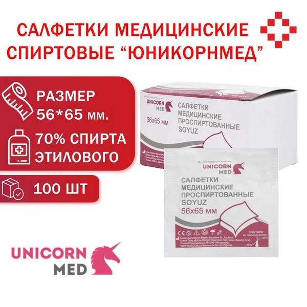 High-quality UnicornMed alcohol swabs, perfect for hygiene and first aid. Each pack contains 100 individually wrapped wipes, measuring 56x65mm. Buy in bulk for superior value and convenience.