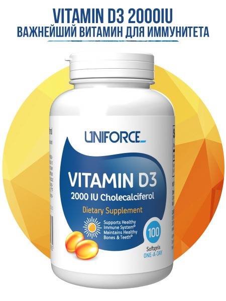 - Option 2 (Problem/solution): Experiencing fatigue, weak bones, or a weakened immune system? Uniforce Vitamin D3 2000 IU offers 100 convenient softgels to help replenish vital vitamin D levels. Improve your health with a daily dose.