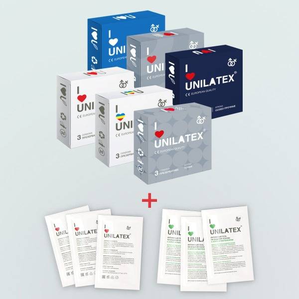 Description: Experience ultimate pleasure with the UNILATEX Premium Variety Pack. This comprehensive set includes 18 condoms (3 each of classic, multi-fruit, ultra-thin, ribbed, dotted, and extra-strong) and 6 sachets of premium lubricant – 3 water-based and 3 enriched with Aloe Vera and Panthenol for extra comfort and hydration. Enjoy diverse sensations and enhanced intimacy with this superior value pack.
