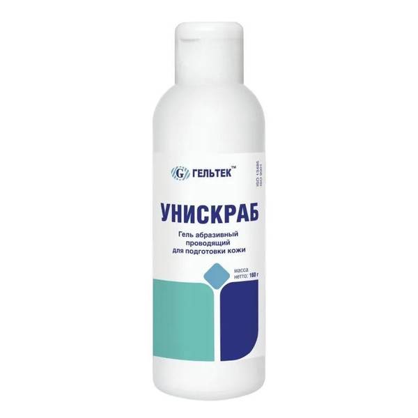 Uniscrab, conductive gel, abrasive gel, skin preparation, EEG, evoked potentials, EMG, ECG, electrophysiology, impedance reduction, electrode gel, medical gel, electromyography gel, electroencephalography gel, ECG gel, stress test, high conductivity gel, low impedance gel, pumice gel, medical device, RZN 2019/8582