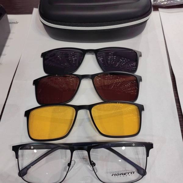 Lightweight and durable unisex metal eyeglass frames from Moretti, designed for a comfortable fit on all face shapes without the need for try-on. Includes a protective case and microfiber cleaning cloth. Custom lenses available with a 20-minute turnaround.