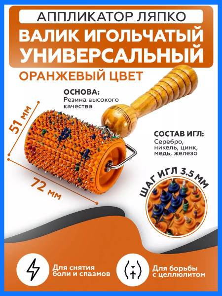 The Lyapko M 3.5 Universal Needle Roller Applicator provides a dynamic, "needle shower" effect, stimulating various body areas. This effect is achieved through galvanic current generated by the needles' contact with the skin. This versatile massager is ideal for the back, buttocks, chest, calves, and thighs. For relaxation, use gentle pressure for 15-20 minutes in the evening. For an invigorating effect, use firm pressure for 3-5 minutes in the morning. The needles are composed of iron, copper, nickel, zinc, and silver, while the hypoallergenic rubber base ensures comfort. The Lyapko M Universal Needle Roller helps treat musculoskeletal disorders, headaches, varicose veins, injuries, and fractures. It aids post-stroke recovery, helps normalize blood pressure, alleviates insomnia, and more. Color (orange, red, blue, green) may vary from the image and does not affect therapeutic efficacy.
