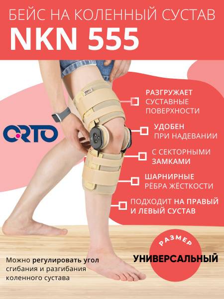 Keywords: knee brace, knee support, knee orthosis, ORTO NKN 555, polycentric hinges, neoprene brace, knee injury, knee pain, post-surgery rehabilitation, osteoarthritis, universal size, adjustable knee brace, knee immobilizer, support brace, recovery brace, arthritis brace, hemophilic hemarthrosis, contractures.