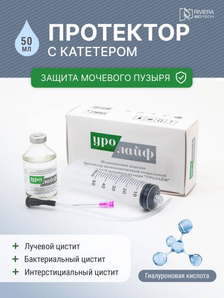 Description: Urolife Protector offers a convenient, pre-filled syringe and catheter system for intravesical instillation (direct bladder application) to effectively treat chronic cystitis. This 50ml solution targets chronic interstitial cystitis, chronic bacterial cystitis, and chronic radiation cystitis. Chronic cystitis damages the bladder's protective lining, composed of hyaluronic acid and chondroitin sulfate. Urolife Protector's unique formula helps restore this protective layer, shielding the urothelium from harmful urinary components and preventing bacterial adhesion. This restoration can significantly reduce recurrence rates and promote remission in chronic cystitis sufferers.