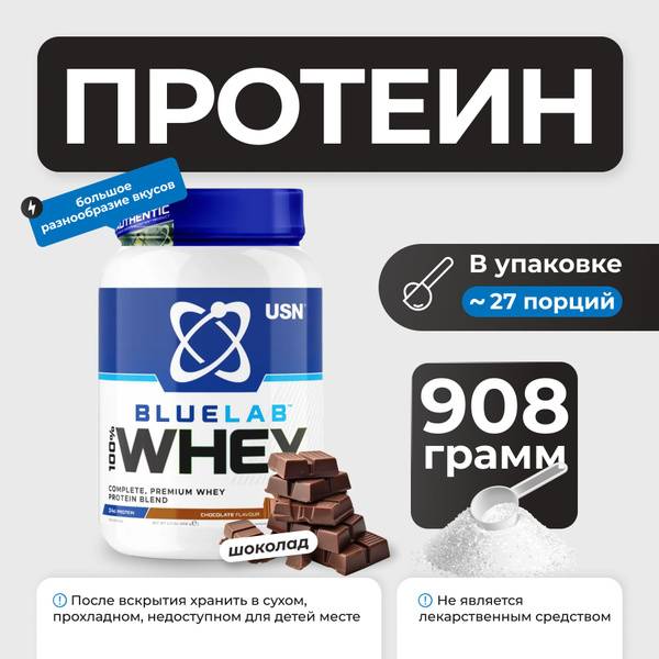 Fuel your fitness goals with USN BlueLab Whey Protein. This 908g chocolate-flavored blend delivers high-quality protein to support muscle growth, recovery, and overall well-being. Experience superior taste and unmatched results with this premium whey protein.