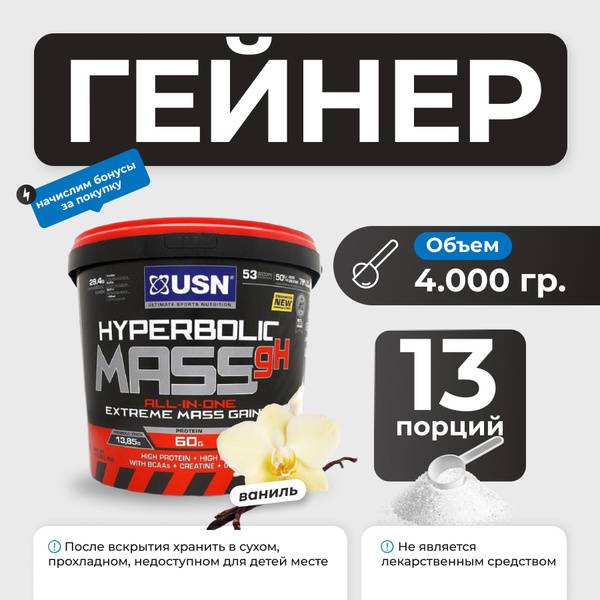 USN Hyperbolic MASS 4000g Vanilla Weight Gainer is the ultimate solution for those seeking significant muscle growth and enhanced performance. Packed with high-quality protein and essential nutrients, it supports lean muscle mass development, improves recovery, and provides a sustained energy boost.