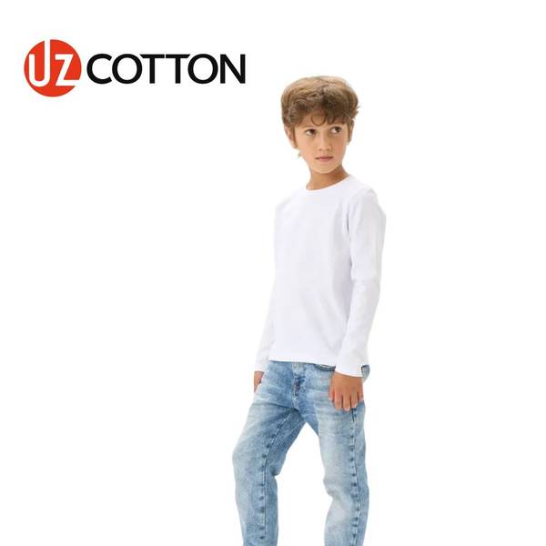Description: The Uzcotton Premium long-sleeve shirt is the perfect choice for active children! Made from 100% natural, 180gsm cotton, this boys' and girls' long-sleeve tee guarantees superior quality and durability. Hypoallergenic and naturally soft, the pure cotton construction prevents irritation and keeps delicate skin comfortable. The breathable fabric wicks away moisture, ensuring your child stays dry even during playtime. Its straight cut offers unrestricted movement and all-day comfort. The classic round neckline adds a touch of style, while the diverse color palette offers a perfect match for any outfit and mood. Ideal for everyday wear, preschool, and school. For a looser fit, we recommend ordering 1-2 sizes larger. Experience the superior quality and comfort of Uzbek cotton with Uzcotton.