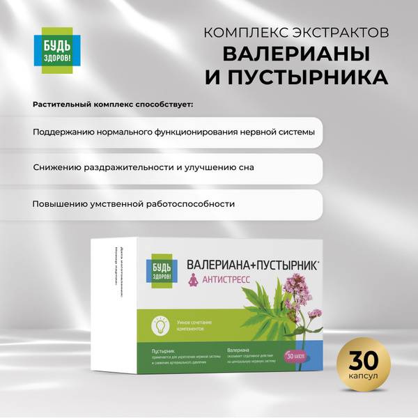 Experience natural stress relief with "Будь Здоров!" Valerian & Motherwort Extract Complex. This multi-component sedative supplement harnesses the power of Valerian root and Motherwort to gently calm the nervous system. Valerian reduces central nervous system excitability, promoting relaxation and improving coronary circulation. It helps alleviate symptoms of nervousness and hysteria, and relaxes smooth muscle spasms. Motherwort further supports nervous system relaxation, reducing symptoms of nervousness and hysteria, relieving cerebral vasospasm, and positively influencing metabolism and blood glucose levels. Glycine adds to the calming effect, reducing psycho-emotional tension and improving cognitive function by enhancing metabolic processes in brain tissue.