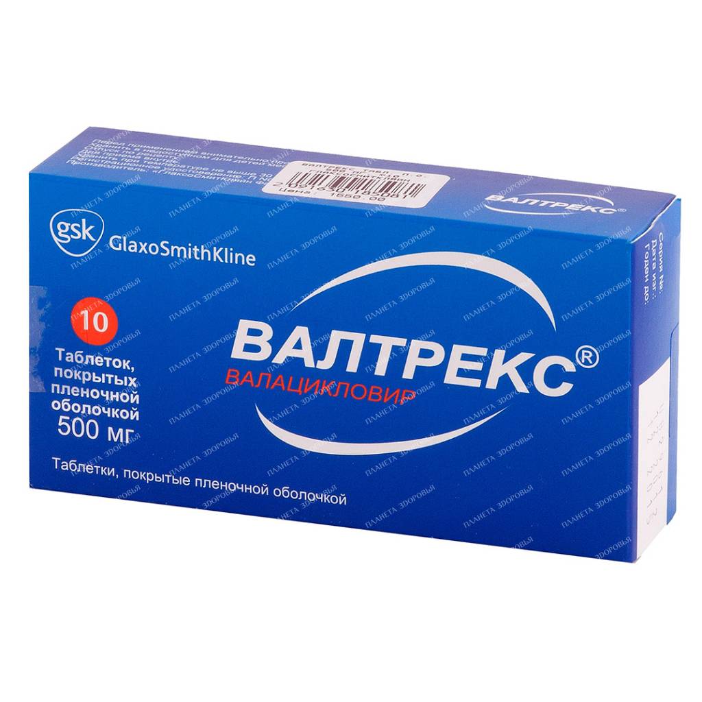 Valtrex tablets p/o 500mg No. 10x1 contain valaciclovir hydrochloride, an antiviral medication used to treat various infections caused by herpes simplex virus (HSV) and varicella zoster virus (VZV).