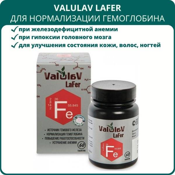 ValulaV LaFer: 60 Tablets of Heme Iron for Anemia & Blood Health