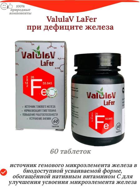 ValulaV LaFer (LyFer) is a powerful dietary supplement formulated to support optimal hemoglobin levels. Its carefully selected blend of ingredients promotes a healthy circulatory system and overall well-being. Each bottle contains 60 tablets, providing a comprehensive course for noticeable results. Ideal for individuals experiencing iron deficiency or those leading active lives, ValulaV LaFer helps boost energy, enhance performance, and strengthen the immune system. Convenient to use, simply incorporate a few tablets into your daily routine. Made with modern health needs in mind, ValulaV LaFer is a safe and effective choice, clinically tested and praised by users for significant improvements in hemoglobin levels. While a balanced diet and regular health checks are crucial, particularly for those prone to anemia, ValulaV LaFer provides essential support for optimal health and vitality. It's the perfect complement to your healthy lifestyle.