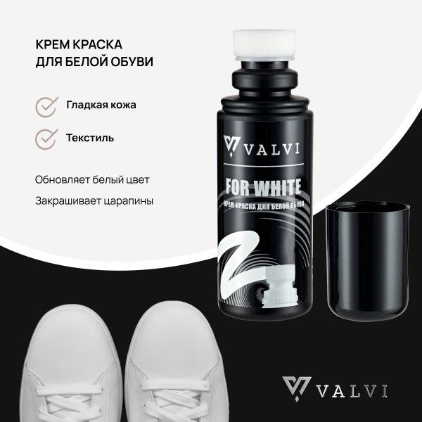 Restore your white shoes to their former glory with VALVI FOR WHITE Shoe Cream. This 100ml cream polish revitalizes white leather, synthetic, and textile shoes (excluding suede, nubuck, and patent leather). Perfect for sneakers and other footwear, this fast-acting formula provides a quick and easy refresh, leaving your shoes looking bright and new. Ideal for all types of smooth natural and synthetic leathers.
