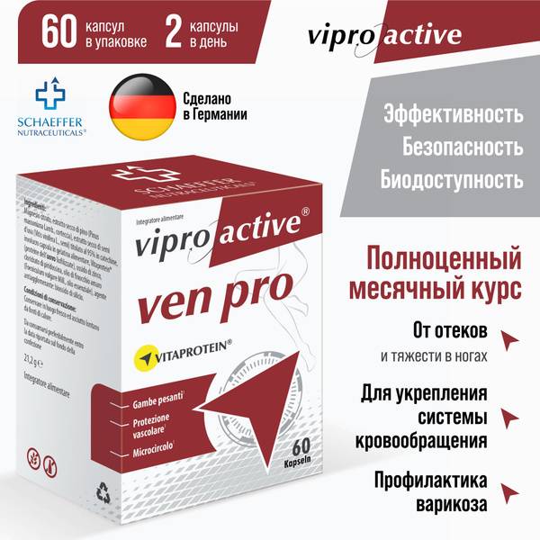 Viproactive VenPro offers comprehensive support for vein health, helping to reduce swelling, leg fatigue, and cramping associated with varicose veins. This superior quality venotonic supplement, part of the Viproactive® line, is manufactured in Germany using high-quality ingredients and cutting-edge biotechnological processes.
