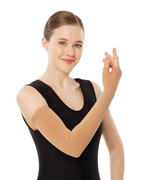 lymphedema, compression sleeve, hand compression sleeve, lymphatic drainage, class II compression, seamless compression sleeve, Variteks-952, hand edema, swelling reduction, arm compression, silicone band, breathable fabric, lymphatic therapy, medical compression, edema treatment, hand glove, integrated glove, size chart.