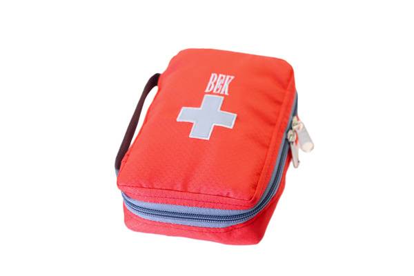 first aid kit, medical pouch, compact first aid kit, lightweight first aid kit, hiking first aid kit, camping first aid kit, outdoor first aid kit, emergency first aid kit, survival kit, Vek M, Oxford 300D, water resistant, durable, multiple pockets, reflective, webbing handle, belt attachment, 2-4 person first aid kit