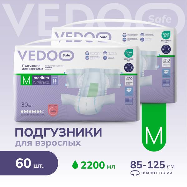 adult diapers, adult incontinence briefs, disposable diapers, heavy absorbency diapers, breathable diapers, incontinence supplies, overnight diapers, daytime diapers, bedridden patient diapers, Oeko-Tex certified diapers, hypoallergenic diapers, VEDOO Safe diapers, adult diaper size M, 60 count diapers, incontinence underwear, adult pull-ups, women's incontinence underwear, men's incontinence underwear.
