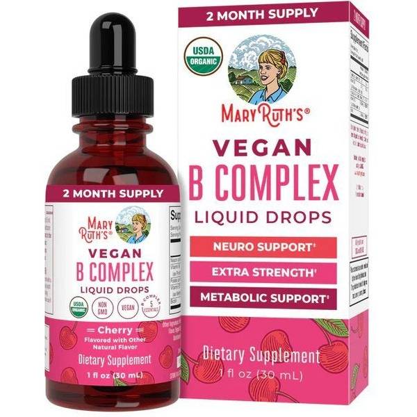 Boost your energy and support optimal health with MaryRuth's Organic B Complex Vegan Liquid Drops. Formulated by MaryRuth Ghiyam, a health educator at the American Academy of Nutrition, these delicious cherry-flavored drops offer a superior way to supplement your daily intake of essential B vitamins.